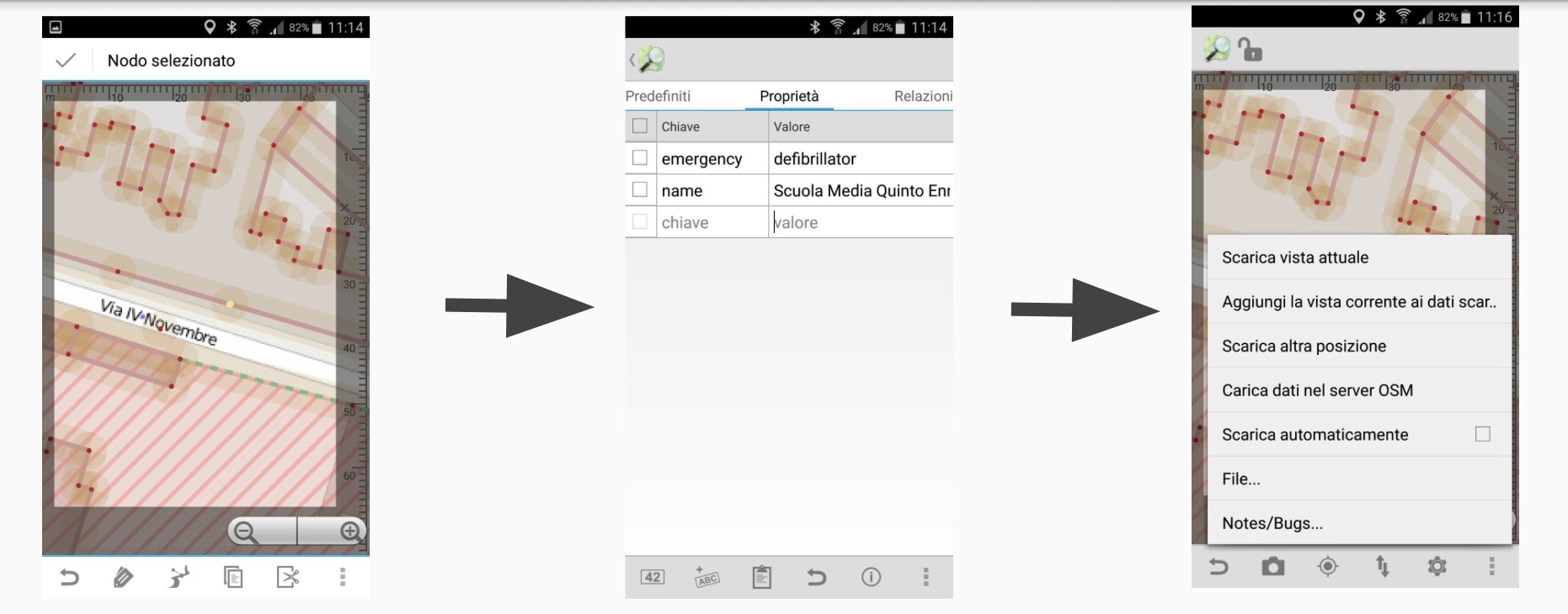 - Inserire i tags emergency=defibrillator e name=nome luogo.